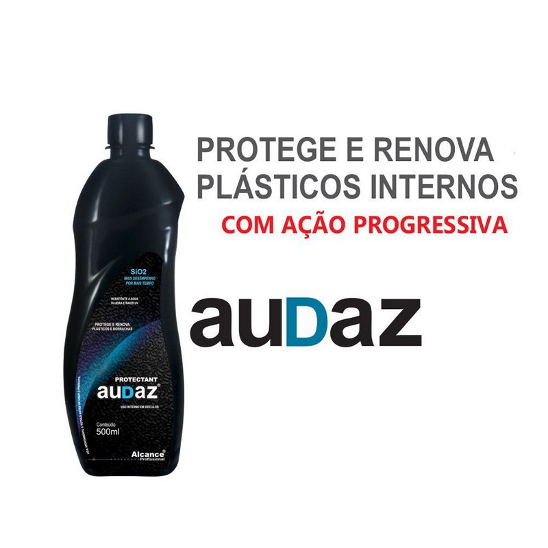 AUDAZ é o resultado de um novo conceito de produtos específicos para serem utilizados no interior de automóveis. É ideal para restaurar e proteger todos os revestimentos internos existentes no mercado mundial, como também, os novos materiais que revestem os mais caros automóveis (ABS/PC e PC/ASA) e que em pouco tempo estará presente em carros populares. Com a utilização do AUDAZ, a sujidade e poeira apenas repousam sobre a superfície e para remover basta utilizar um pano úmido e outro seco para reestabelecer o brilho. AUDAZ utiliza um novo sistema mundial de uso progressivo. Menos quantidade de uso após cada aplicação. A permanência do AUDAZ sobre a superfície após a primeira aplicação permanece por até 20 dias. E, após a segunda aplicação o AUDAZ poderá permanecer por até 50 dias. O poder de fixação do AUDAZ poderá ser testado após 12 HORAS após a aplicação. A perduração do brilho dependerá do grau de sujidade aos quais as superfícies internas do veículo são expostas no cotidiano de uso. AUDAZ tem um bom índice de proteção contra raios UV nocivos.