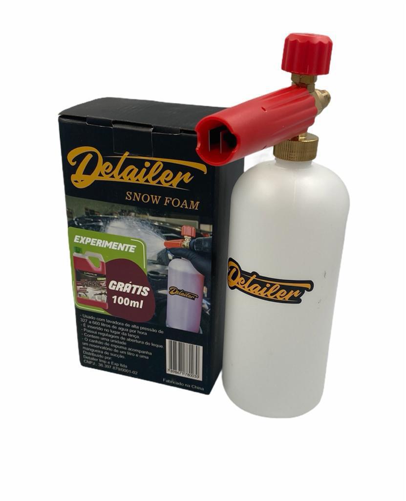 Detailer Snow Foam Canhão de Espuma com Reservatório de 1 Litro é um bico com reservatório, proporcionando produto em forma de espuma para a lavagem automotiva.