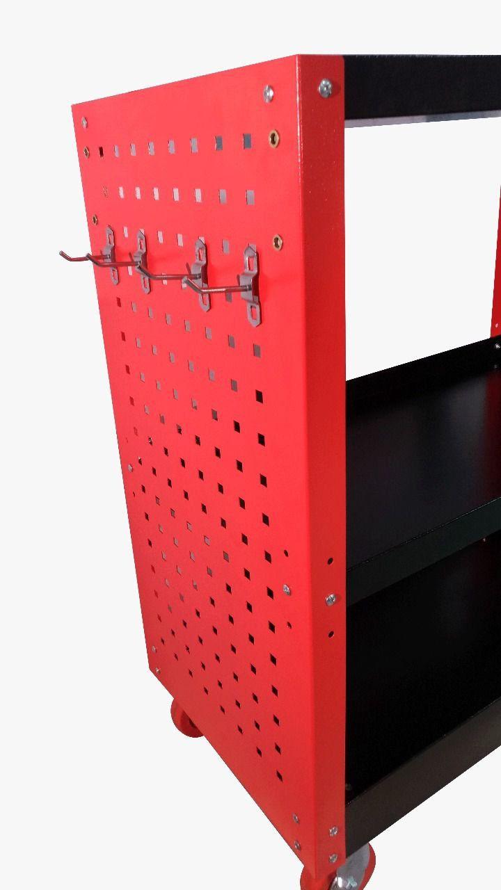 O Carrinho para detalhador Kers modelo Profissional é um carrinho fabricado em aço, vermelho e preto, com uma ótima resistência e amplo espaço.
