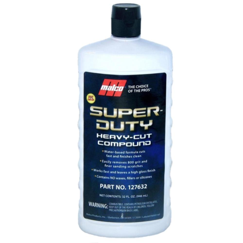 O polidor automotivo de corte Malco Super Duty Compound é um composto super agressivo desenhado para remover arranhões difíceis e oxidações de superfícies revestidas. Remove facilmente arranhões de lixa 800. Malco Super Duty Compound trabalha rápido e deixa brilho quando usado com uma boina de lã 100% natural.