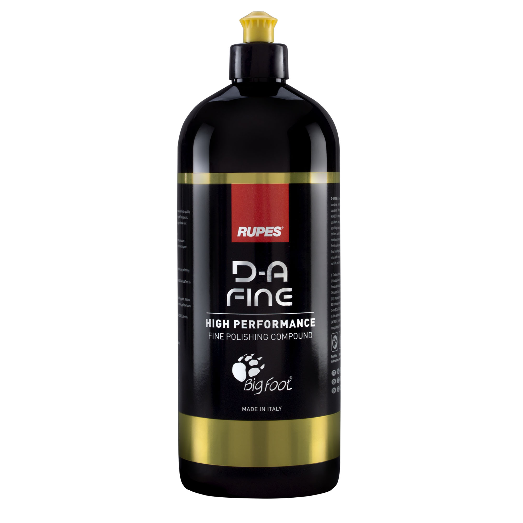 A formulação é otimizada para atingir o melhor desempenho se usada com as boinas de espuma amarela RUPES, boinas de lã de corte ou boinas de microfibra de corte, junto com as politrizes da BigFoot, incluindo as roto orbitais livres e forçadas.
