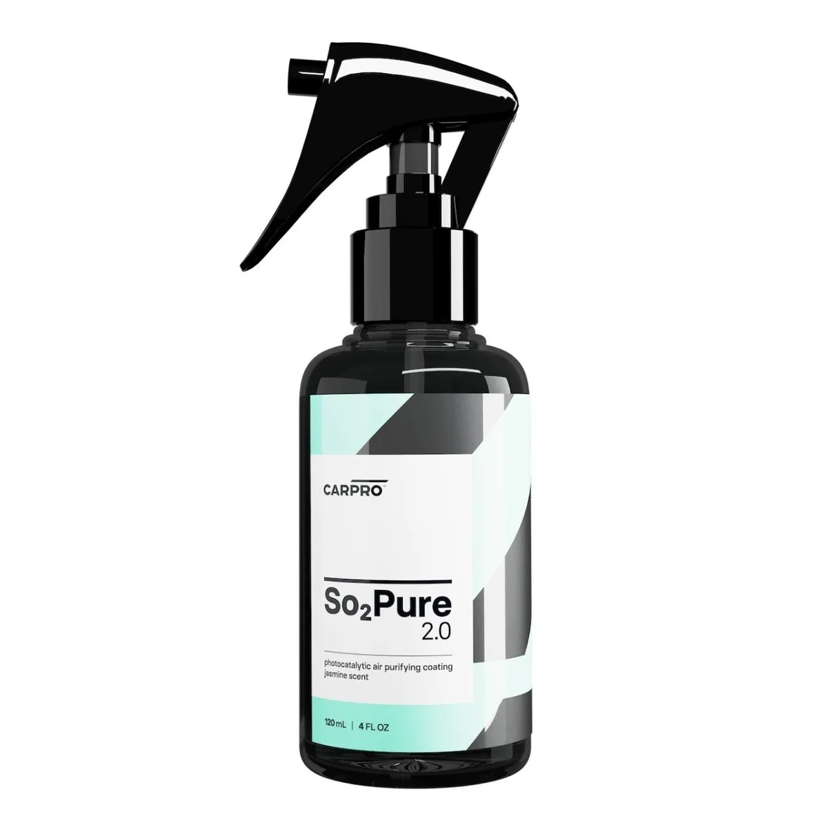 O CarPro So2Pure é a mais recente inovação em tecnologia de purificação do ar! O So2Pure é um revestimento avançado de purificação do ar baseado na mais recente tecnologia nano da Tio2! Na presença de luz, o oxigênio ativo é formado e excitado nas superfícies tratadas com So2Pure, o que destrói rapidamente todos os poluentes atmosféricos de tamanho micro que existiam anteriormente ou pousam nele após a aplicação. Isso inclui a neutralização de odores orgânicos, fumaça de cigarro, fumaça de gasolina, poluição atmosférica, gases de escape, gases químicos ou VOCs de tecidos de automóveis, plásticos e toxinas do ar!