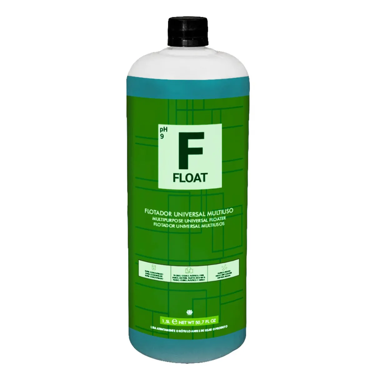 Float APC Flotador é altamente equilibrado e seguro, mesmo aplicando puro em tecidos delicados. Foi desenvolvido com tensoativos biodegradáveis e surfactantes especiais para equilibrar performance, rapidez e segurança. Float tem pH levemente alcalino sendo perfeito para utilização em manchas causadas por óleos e gorduras, manchas inorgânicas em geral. Pode ser usado em peças delicadas como alcântara, suede, linho, couro natural sem riscos de danos. Float tem odor levemente cítrico promovendo uma experiência agradável de limpeza e uso, sem irritar a pele, olhos ou respiração. Outra característica única de Float é o fato de não conter em sua composição amônia. Isso torna possível mistura com ZBAC em um processo de limpeza mais rápido, com funcionalidade desta mistura por um prazo de 2 horas.