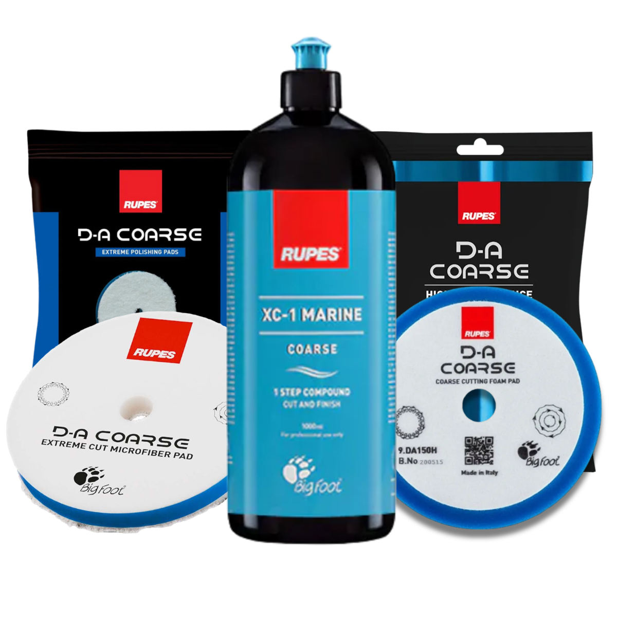 Maximize o potencial de polimento do seu veículo com o Kit de Polimento Rupes, uma solução completa e eficiente para a correção de superfícies automotivas. Este kit combina o poderoso Composto de Corte XC-1 Marine com a versátil Boina de Espuma D-A Coarse de 5 polegadas e a agressiva Boina de Microfibra D-A Coarse Extreme Cut de 5 polegadas, proporcionando uma abordagem abrangente para enfrentar uma variedade de desafios de detalhamento.