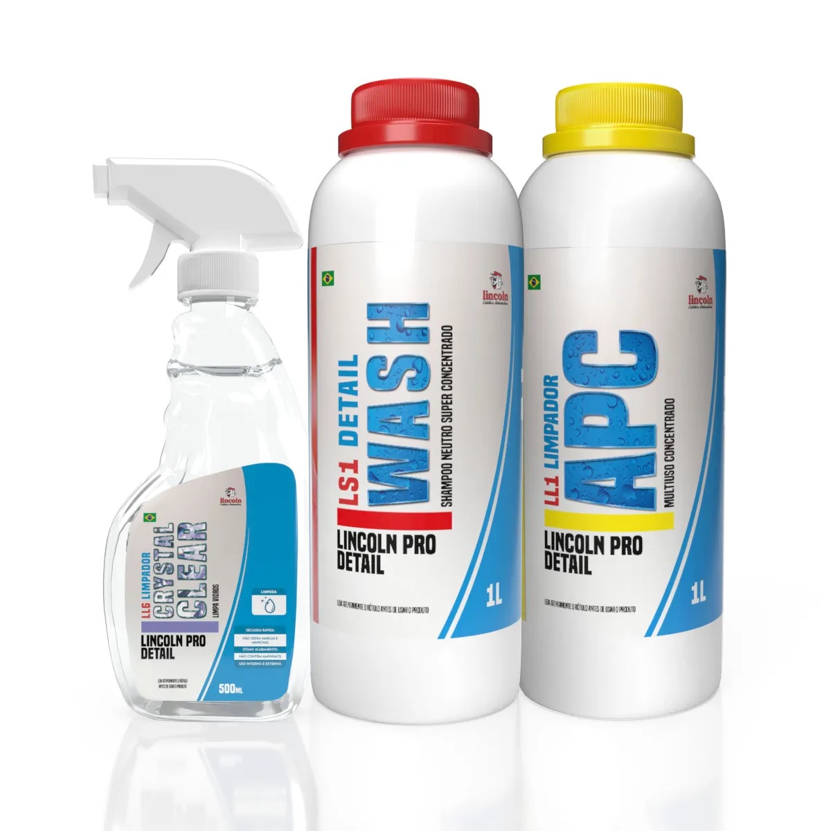 Kit Lincoln para Limpeza Automotiva APC LL1 1L + Shampoo LS1 1L + Limpa Vidros LL6 Crystal Clear 500ml.