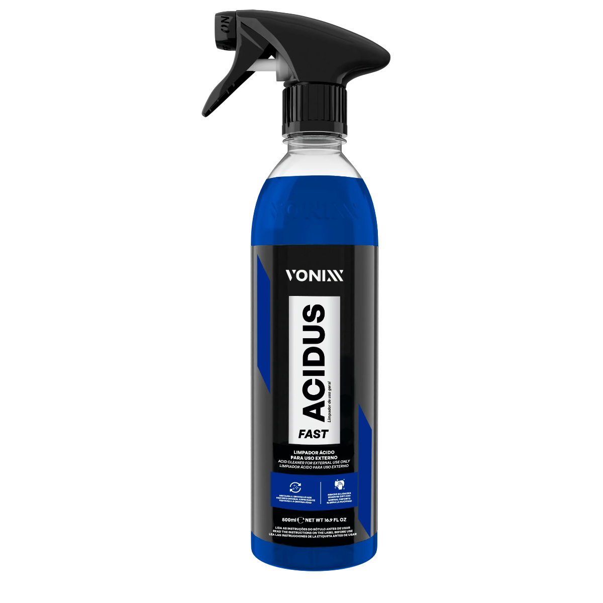 Sua fórmula balanceada e segura, quando utilizada corretamente, permite restaurar a originalidade e o brilho das superfícies, devolvendo o aspecto limpo e bem cuidado a diversas áreas do veículo. Além disso, o ACIDUS FAST é eficiente na remoção de marcas d’água leves em vidros e pinturas, sem agredir as superfícies.