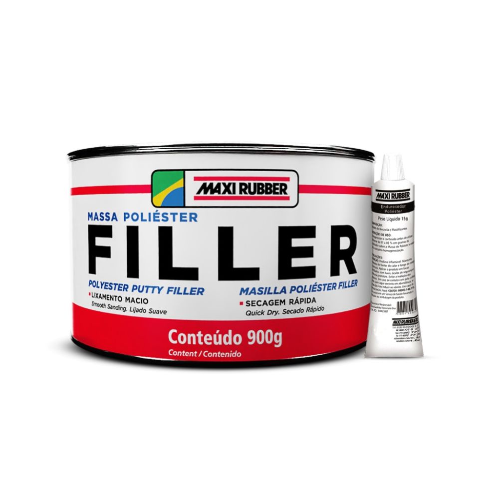 Massa Poliéster: Resina de poliéster, pigmentos, cargas e aditivos.