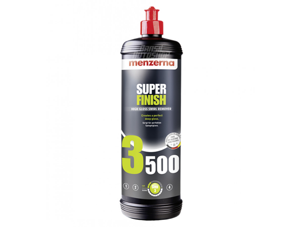Menzerna Super Finish Lustrador 3500 (1 Litro) é indicado para remoção de micro arranhões e hologramas, utilizado na etapa de lustro, conferindo brilho profundo a pintura.