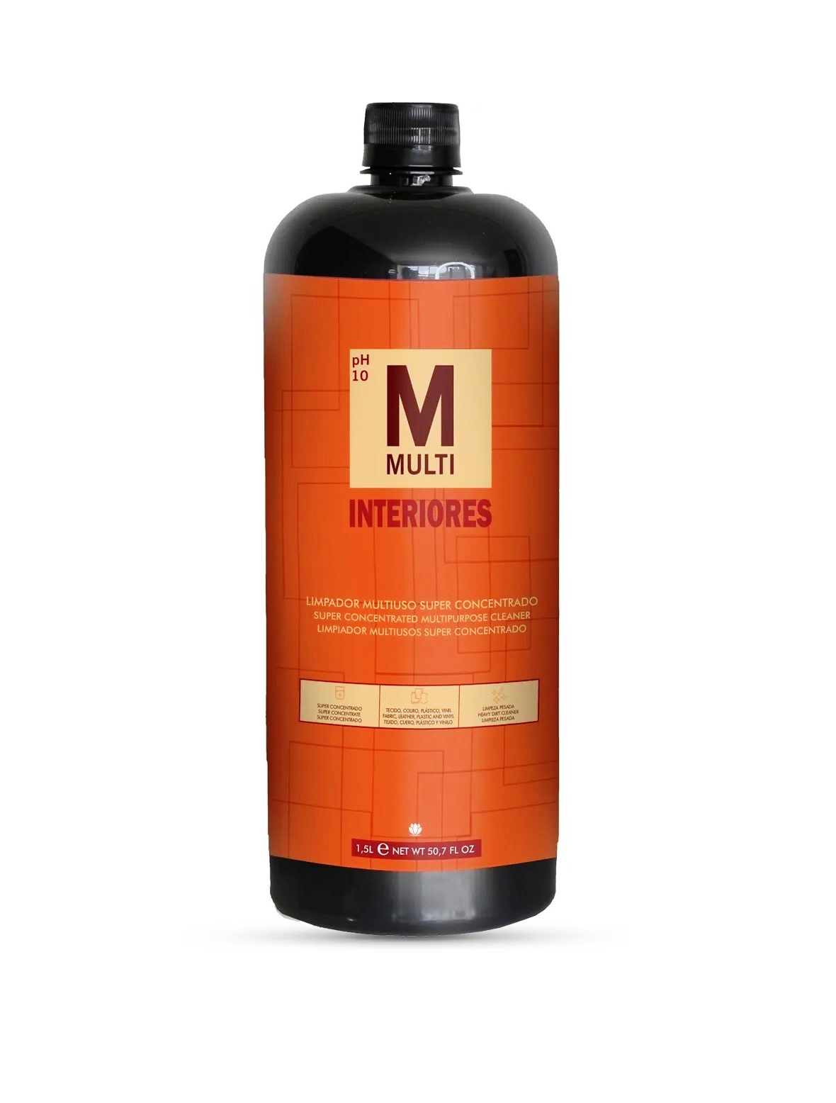 O Multi interiores é um limpador multipropósito super concentrado que dispensa finalizadores, seu uso é indicado para manchas de alta intensidade em estofados, tapetes, couro e vinil.