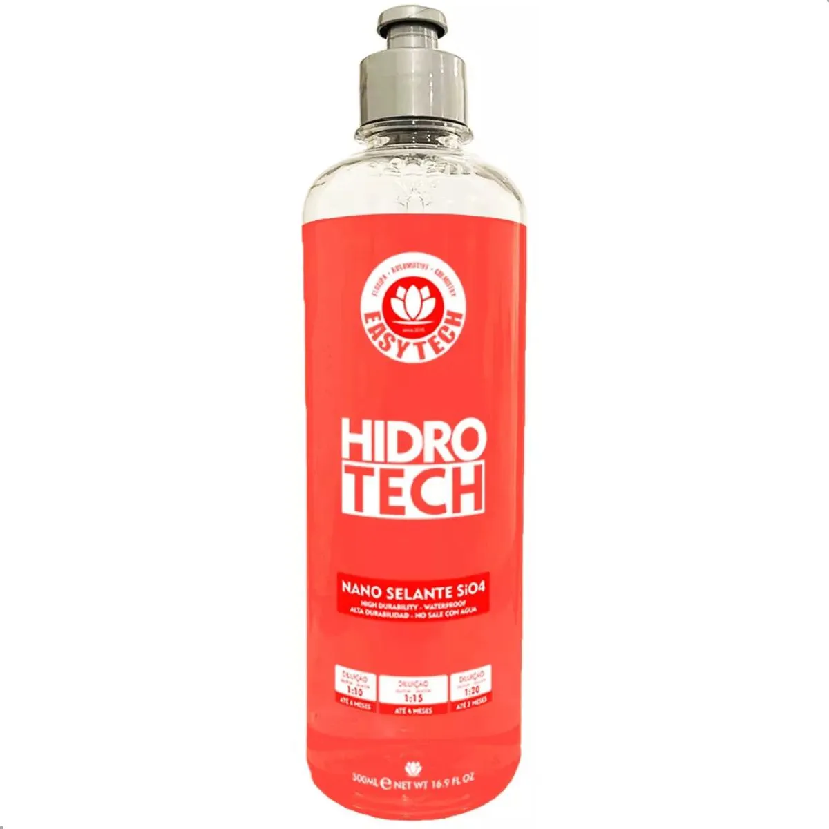 O Hidrotech é um nano selante inovador à base de polímeros de silício (SiO4) que penetram profundamente nos microporos da pintura, criando uma camada protetora ultra fina e resistente, garantindo proteção duradoura e brilho extremo para seu veículo. O produto ativa seu poder hidrofóbico, repelindo água, poeira e sujeira, facilitando a limpeza e secagem do automóvel. Com uma durabilidade excepcional, possui excelente custo benefício devido a sua alta concentração, sendo um produto extremamente econômico, uma única garrafa rende até 10 litros de solução diluída. Com proteção UV, evita o desbotamento e a oxidação da pintura, preservando sua beleza original por mais tempo com um acabamento impecável e luxuoso.