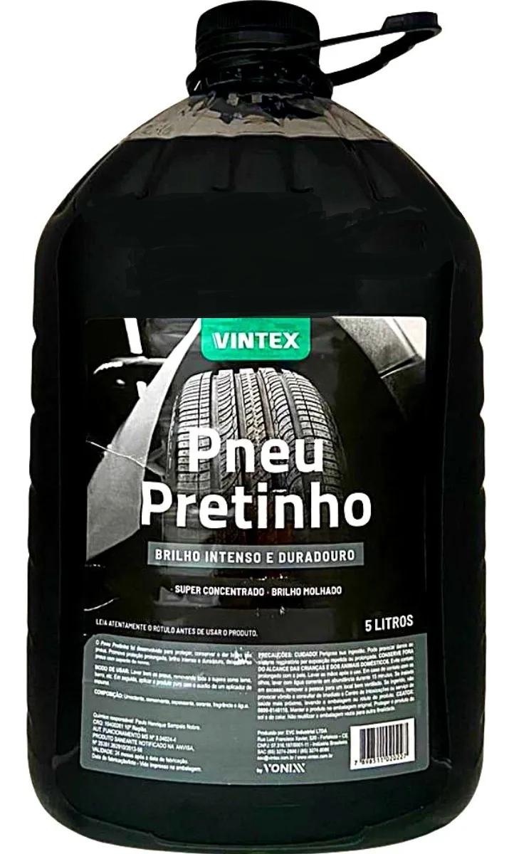 PNEU PRETINHO Propriedades: Brilho molhado Super concentrado Pneu Pretinho O PNEU PRETINHO Vonixx¨ Ž um produto que foi especialmente desenvolvido para proteger, conservar e dar brilho aos pneus em geral. Prote‹o prolongada, brilho intenso e duradouro que deixa os pneus com aspecto de novos. .