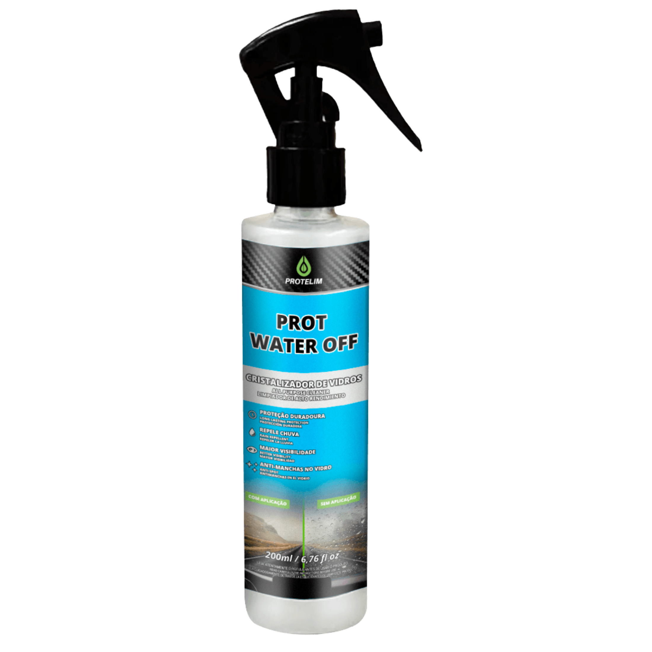 PROT WATER OFF é um cristalizador de vidros em geral. Sua fórmula inovadora à base de água cria uma película invisível sobre o vidro.