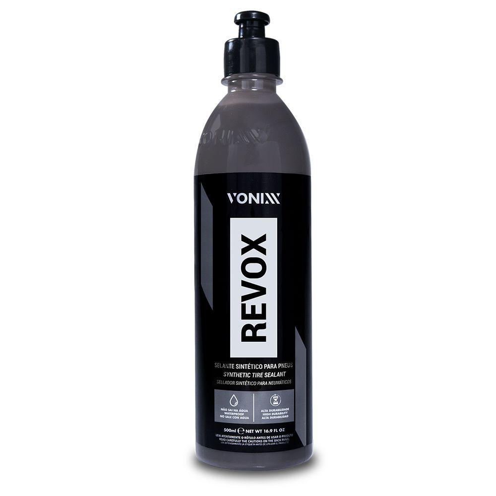 Revox é um selante sintético para pneus, formulado para proteger, dar brilho e renovar o seu aspecto, além de promover total hidrorrepelência. Sua fórmula exclusiva é livre de solventes, ecologicamente correta e não inflamável. Revox é extremamente resistente à lama e chuva, deixando o pneu limpo por mais tempo.