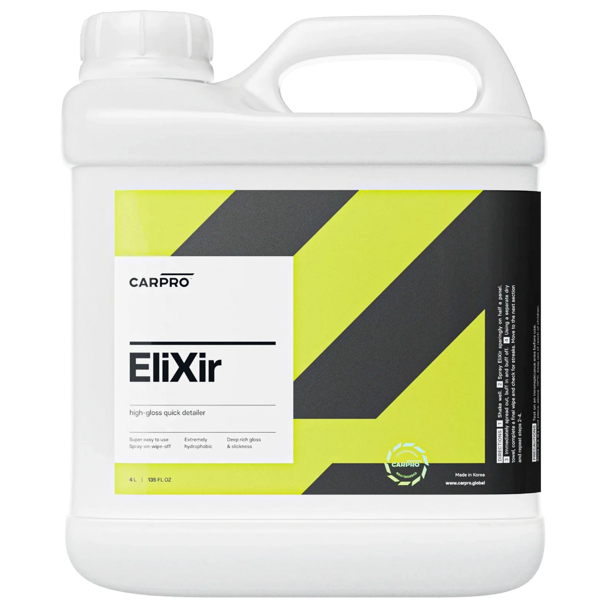 Elixir oferece um acabamento notoriamente mais brilhante e hidrofóbico para pintura e vidros, superior aos tão conhecidos quick detailers ou spray wax
