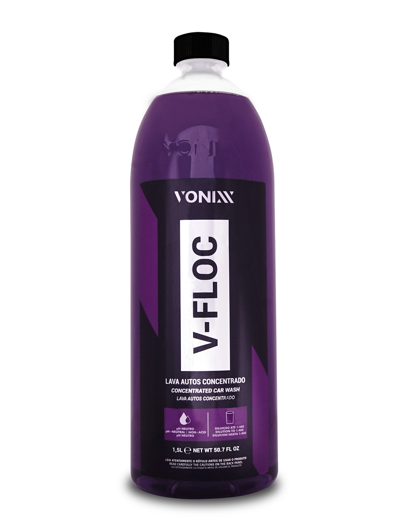 V-Floc Vonixx é um lava autos de alta performance e de pH neutro, desenvolvido exclusivamente para uso profissional. Por conter matérias primas de alto padrão tais como agentes condicionadores e tensoativos especiais, proporciona uma lavagem suave e eficiente sem remover ceras ou selantes, sendo perfeito para quem busca qualidade e economia na lavagem do veículo.