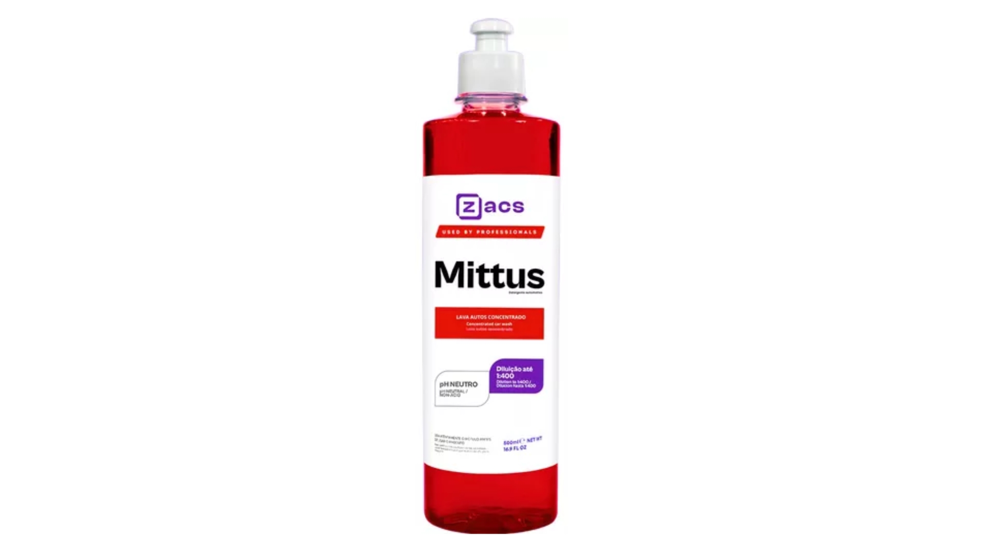 MITTUS é um lava-autos concentrado e pH neutro que proporciona uma limpeza suave e eficiente. Sua fórmula contém agentes condicionadores e tensoativos especiais que auxiliam na remoção da sujeira sem danificar a pintura do veículo. Possui um alto grau de lubrificação, o que reduz o atrito entre a luva de microfibra e a pintura, prevenindo microrriscos. Além disso, o produto promove brilho e aspecto de renovação da pintura.