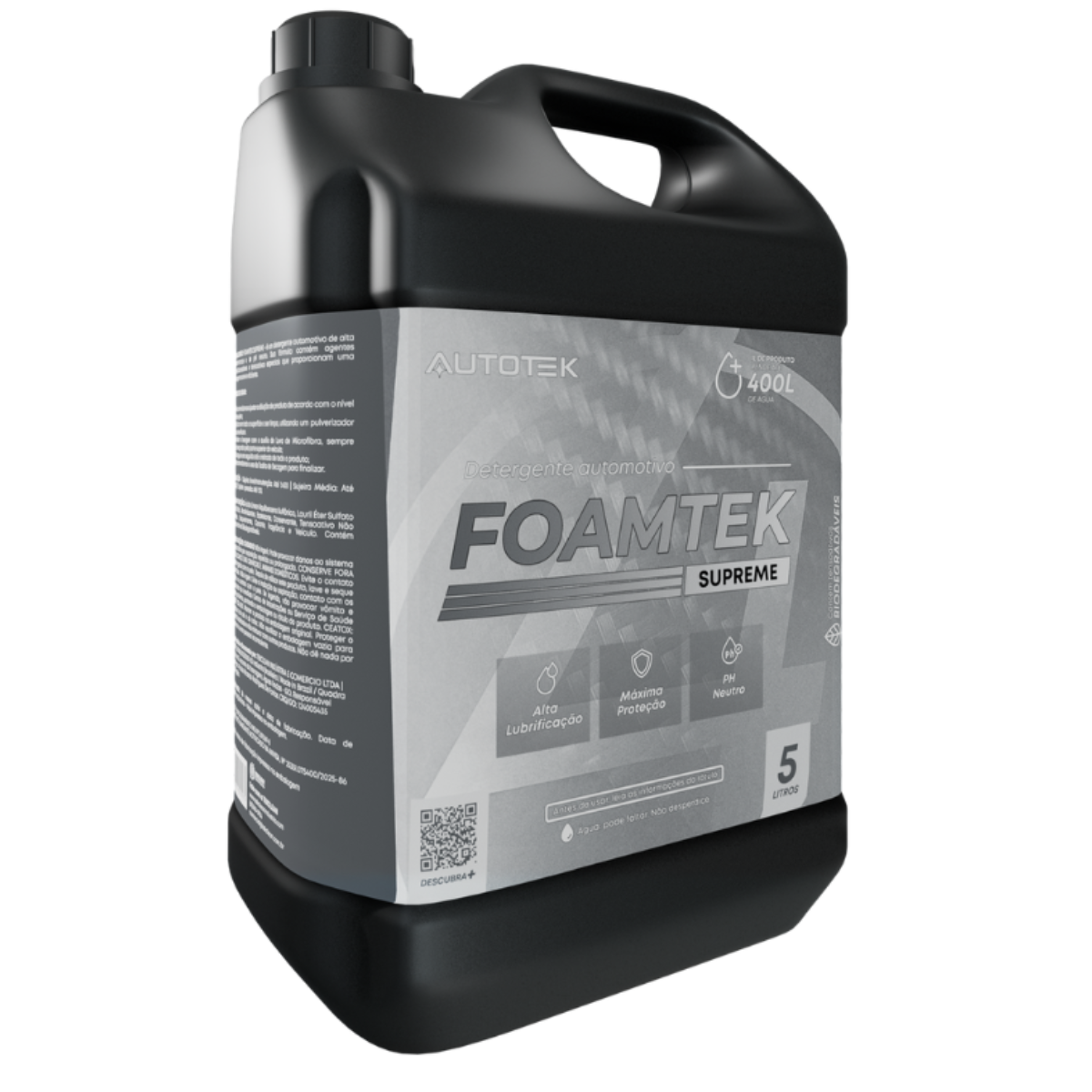 O Foamtek Supreme é um shampoo automotivo concentrado de alta performance e pH neutro, desenvolvido para proporcionar uma lavagem suave, segura e extremamente eficiente. Sua fórmula equilibrada reúne agentes condicionadores e tensoativos especiais que criam uma espuma densa e lubrificada, garantindo excelente remoção de sujeiras sem agredir a superfície.