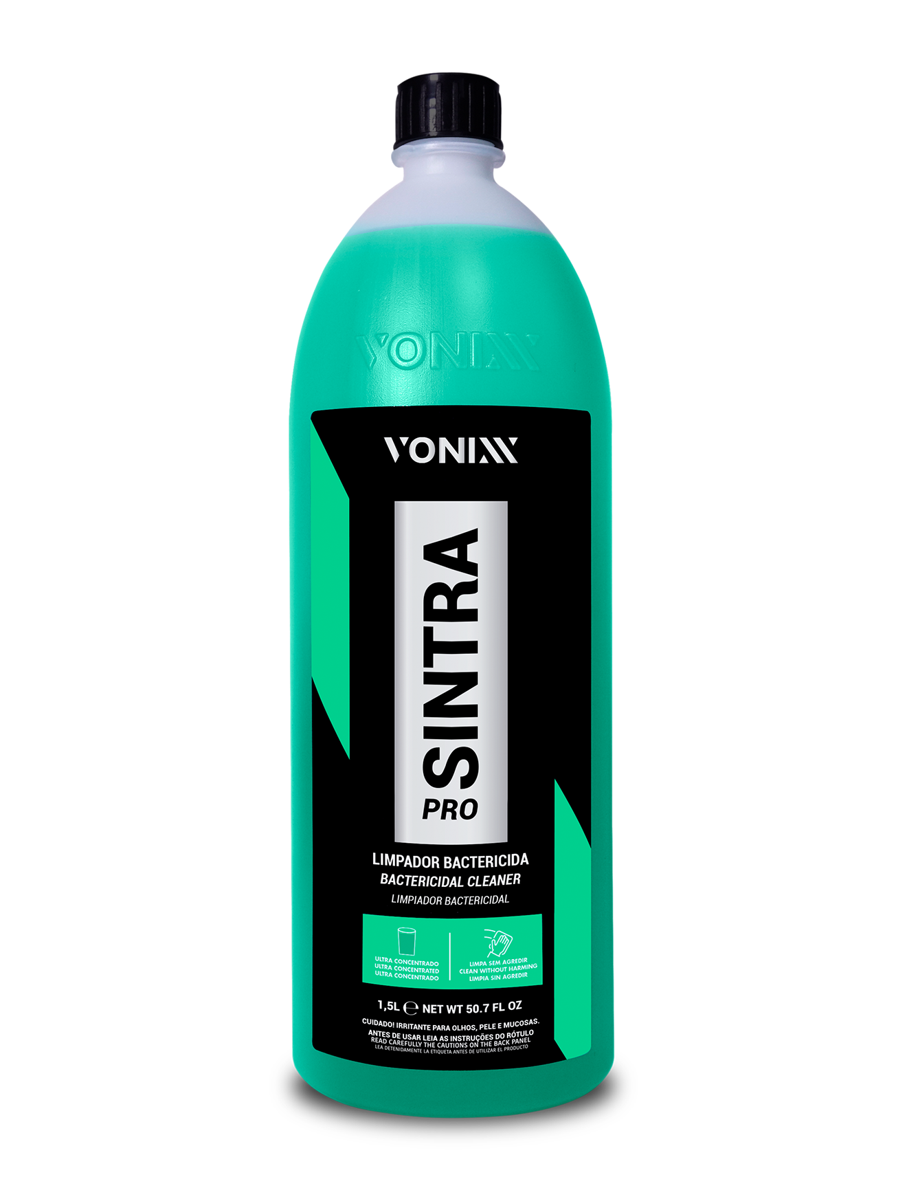 SINTRA PRO – LIMPEZA INTERNA é um multilimpador flotador bactericida de pH balanceado e ultra concentrado, indicado para limpeza de painéis, laterais e cantos de portas, bancadas de couro, carpetes e estofados. Promove alto poder de remoção de manchas de gordura e sujeiras diversas, além de eliminar microrganismos causadores de doenças no interior do veículo. A baixa espumação o torna ideal para ser usado em extratoras, eliminando as sujidades do interior do veículo e deixando-o limpo novamente. SINTRA PRO diminui maus odores no interior do veículo, tornando-o mais saudável e livre de impurezas.