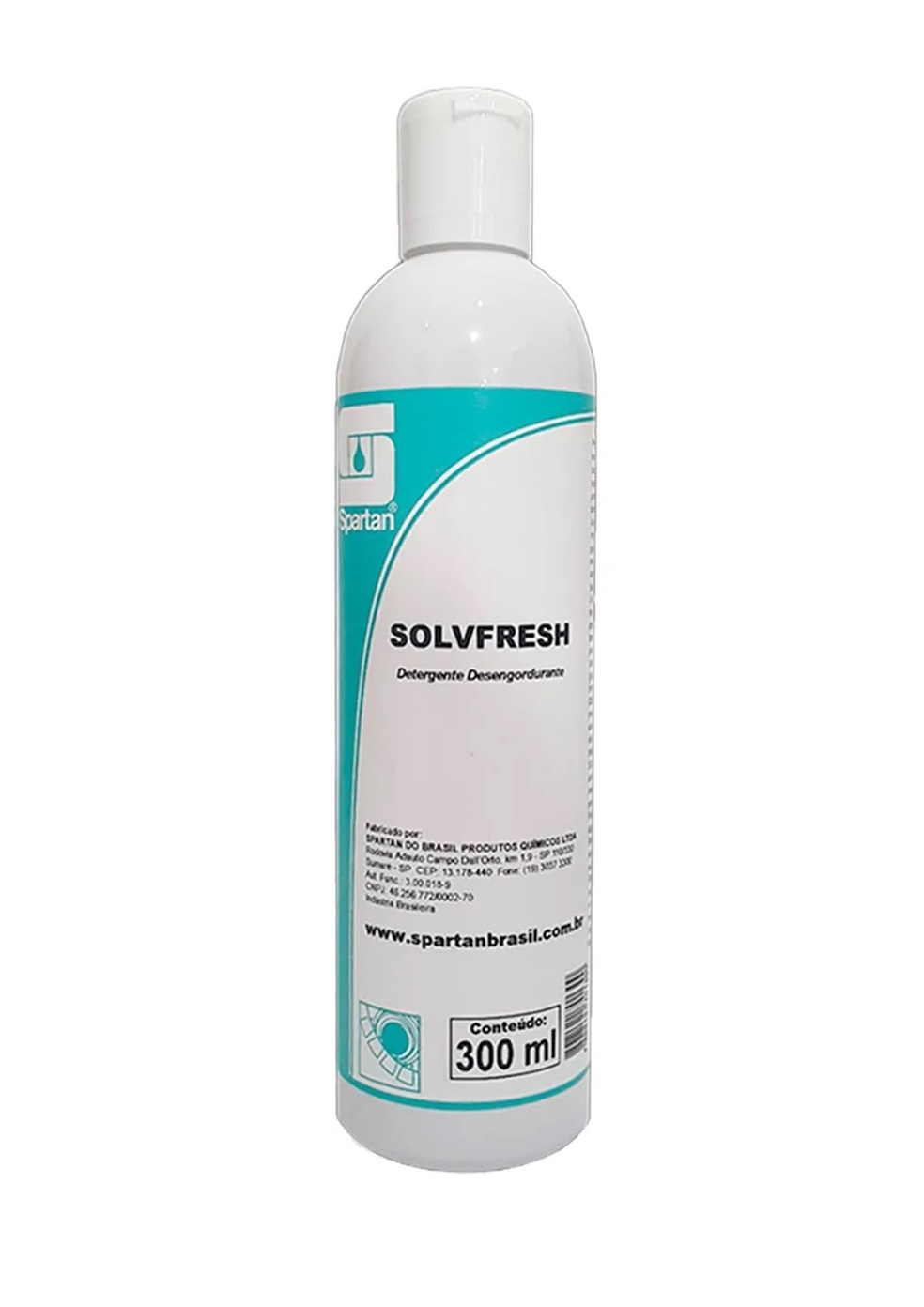 Solvfresh é um detergente desengordurante e desengraxante concentrado da spartan, indicado na remoção de manchas mais dificeis como desodorante, batom, graxa, gordura, protetor solar e molhos em geral e tambem pré-lavagem e lavagem de roupas profissionais, tais como, uniformes, roupas de mesa de restaurantes e tira manchas de estofados e carpetes.