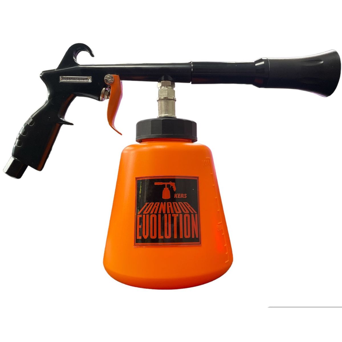 Kers Tornador Evolution é a melhor opção quando o assunto é limpeza interna do veículo, pois proporciona uma limpeza completa, rápida e eficaz. Acoplado a um compressor de ar, sopra a solução de limpeza juntamente com a pressão do ar, onde é capaz de desprender totalmente a sujeira impregnada. Calibre entre 60lb a 90lb para um melhor funcionamento e durabilidade do equipamento. Remove com facilidade a sujeira em carpetes, bancos, estofados, além de ser ideal para limpeza de peças plásticas, acrílicas, vidros máxima performance com baixíssimo custo de manutenção, proporcionando alto conforto durante o processo de limpeza.