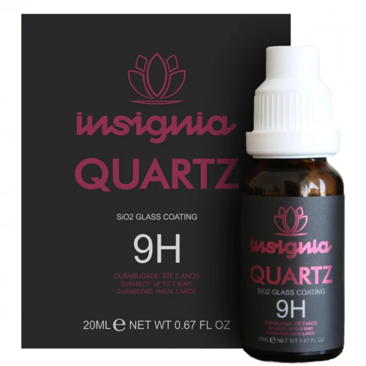Insignia Quartz é um nano protetor de pintura com 9H de dureza, certificado pela SGS, maior empresa do mundo em certificações. Produzido com cristais de quartzo usando tecnologia de SiO2 tridimensional, garante dureza, alto poder hidrofóbico com ângulos de gota de 110º, alta resistência química por até 3 anos.