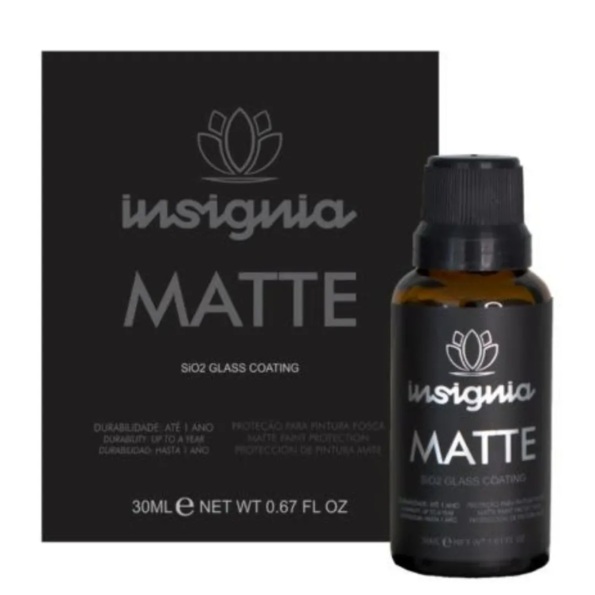 Insignia Matte é um nano revestimento destinado a proteção de pinturas foscas ou adesivadas. Produzido com polímeros de SiO2 tridimensional, garante alto poder hidrofóbico com ângulos de gota de 110º e alta resistência química. Além disso, Insignia Matte mantém o acabamento fosco original, preservando a originalidade da peça.